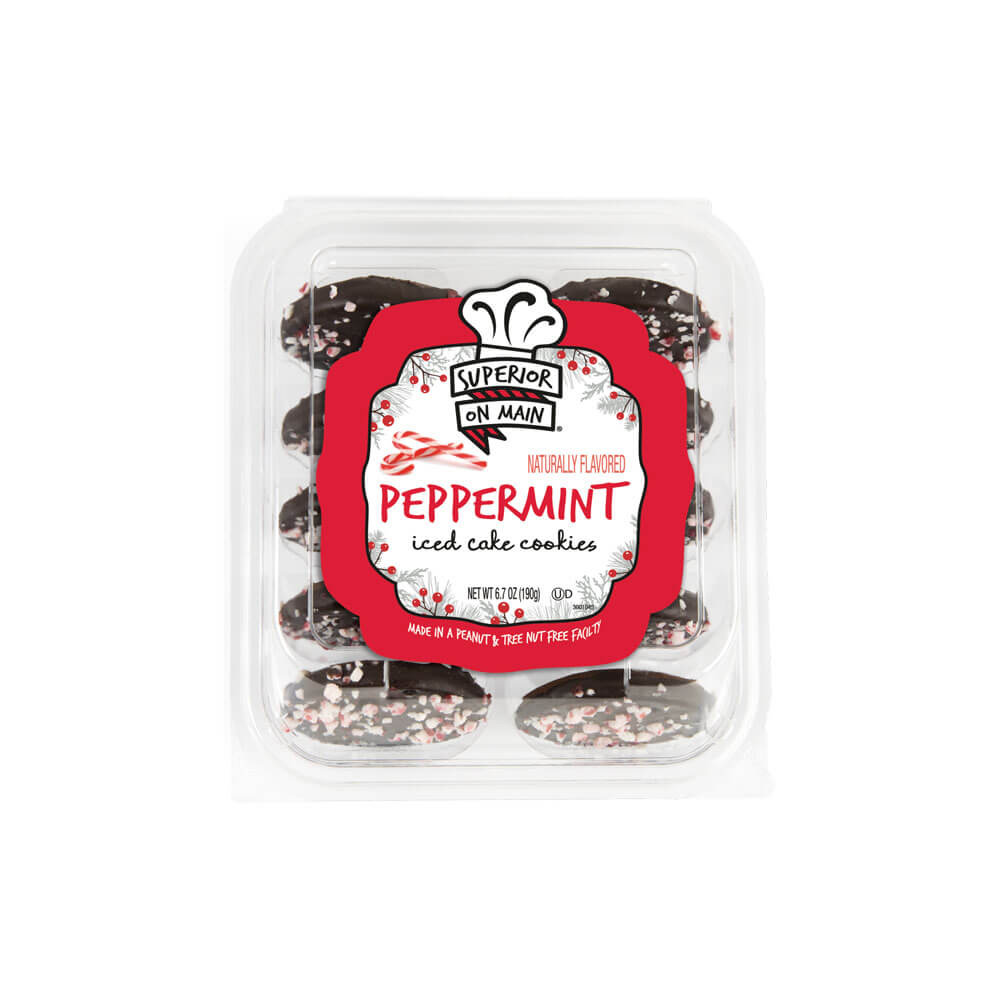 Chocolate cake cookies with peppermint flavored chocolate icing and peppermint candy pieces